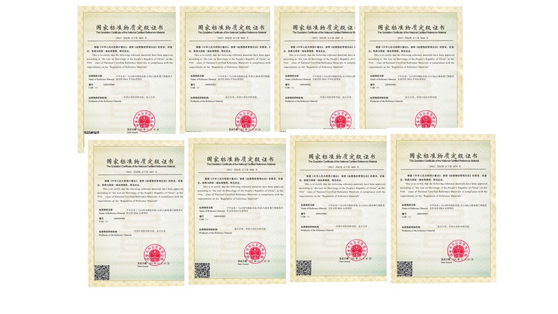 图2:国家一级标准物质证书(GBW 099000-GBW 099007)