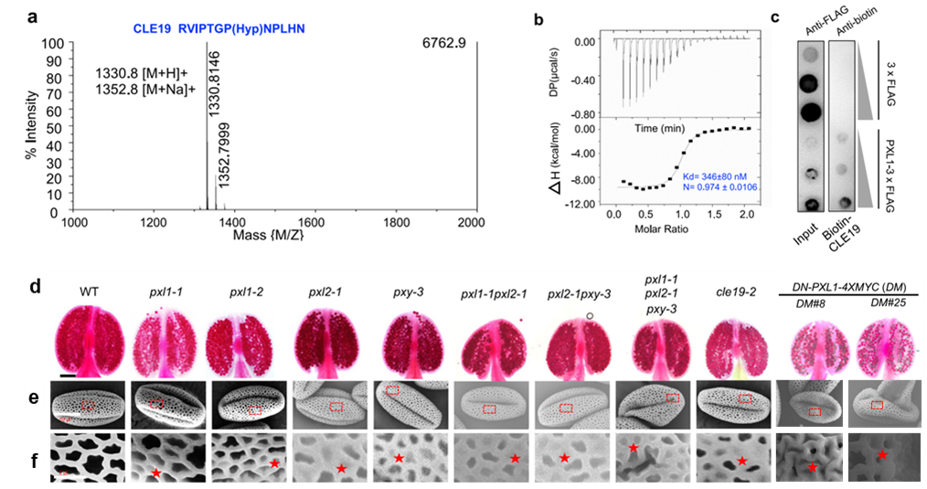 图1. PXL1识别CLE19小肽调控花粉发育
