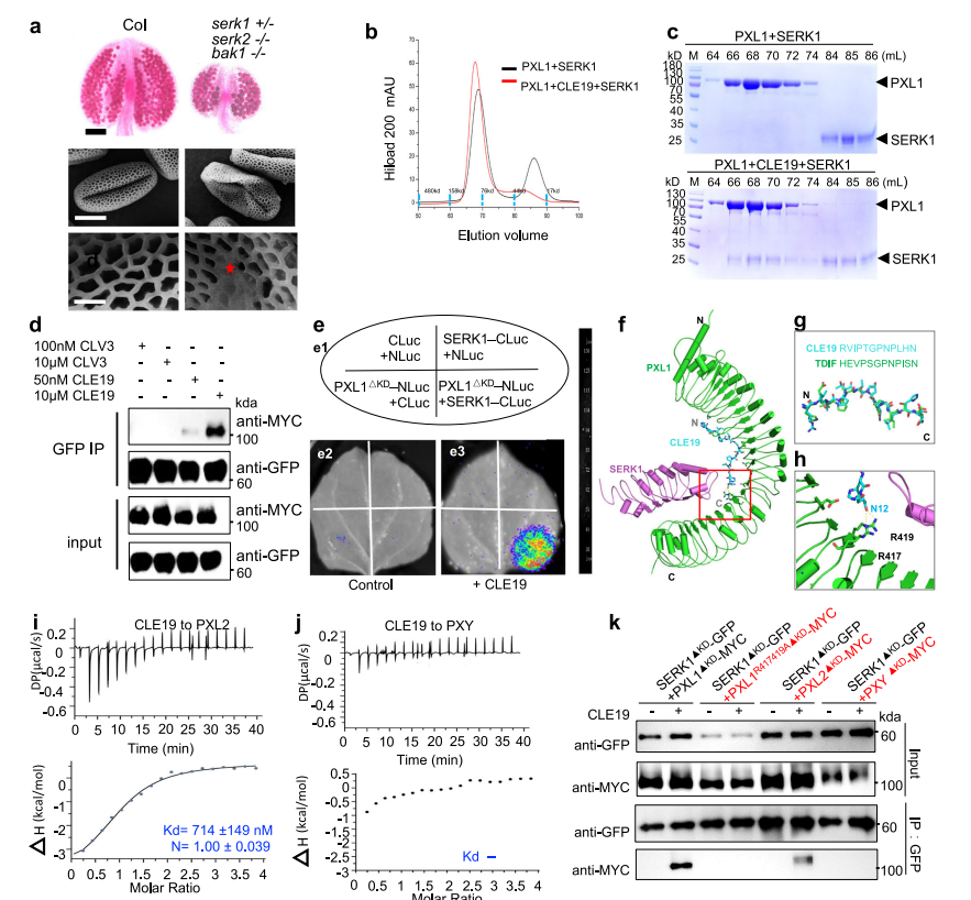 图2. SERKs作为PXL1共受体识别CLE19小肽调控花粉发育